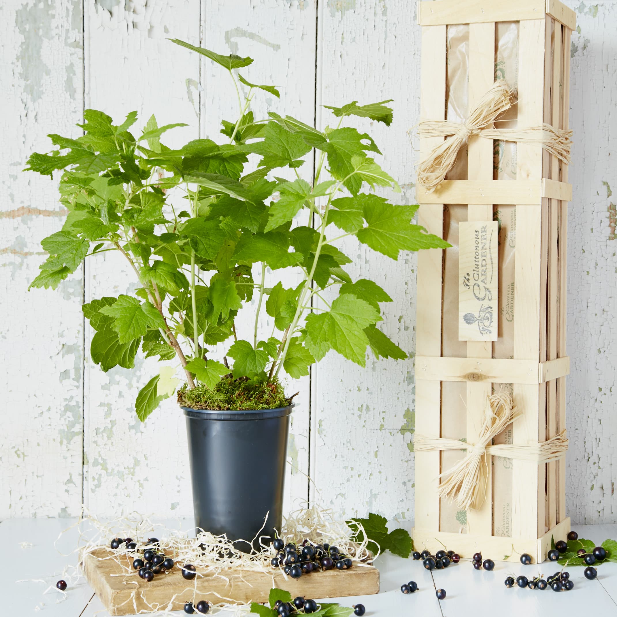 Water well after planting and during the first summer until the plant is established. Once your blackcurrant is well rooted in, it should only need watering when the soil becomes dry, or in especially dry spells. When watering, pour the water onto the plant at ground level, rather than from above. Avoid very heavy watering when the blackcurrants are ripening, as this can cause the currant skins to split.