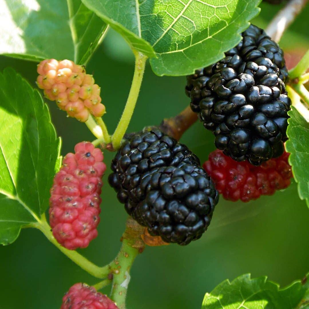 Mulberries are large, delicate berries which bruise very easily and don’t travel well, so you will rarely find them for sale. All of which makes growing your own even more rewarding!