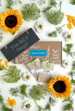 A unique gardening gift to celebrate any triumph! The lucky recipient will receive a collection of seeds for a flourishing floral garden, accompanied by a garden slate engraved with your own special message.