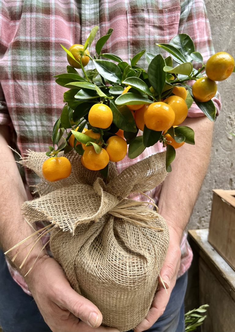 Our ever-popular fruiting Calamondin orange tree will arrive in a hessian wrapped pot and will bear fragrant orange blossoms and harvests of marvellous miniature oranges.