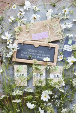 Inside a beautifully decorated presentation box, the happy couple will discover three seed packets to grow a collection of stunning white flowers — lady’s lace, cosmos and white beeblossom. Together, these elegant blooms create a graceful and meaningful display. The gift also includes a large personalised slate, ready to hang proudly in their flourishing garden.