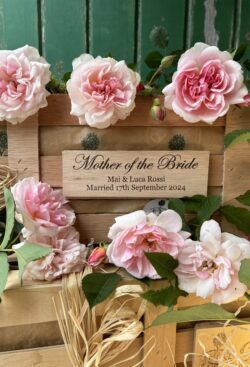 The box contains a personalised crate containing a young rose bush, ready to grow and reward the hard working mum with a display of fragrant pink roses year after year, their beautiful blooms serving as a unique reminder of that very special day.
