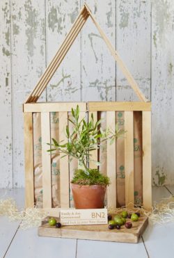 The young evergreen olive tree will arrive carefully packaged in wood wool inside a handsome personalised wooden crate, ready to be leafy and lovely all year round. It will thrive in the garden or in a pot on a patio or balcony.