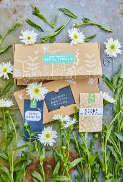 Inside a beautifully decorated presentation box, the lucky recipient will find a packet of chrysanthemum seeds and a smart slate engraved with their name and birth date to hang in their flourishing garden.