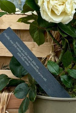 To add a personal touch, the gift includes a custom-engraved slate plaque, allowing you to commemorate the occasion with the child’s name and special date. This personalised keepsake will be treasured for years to come, serving as a lasting memento of love and new beginnings.