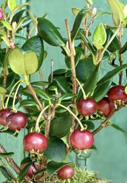 Our favourite little guava plant, the Chilean guava is a pretty, ornamental shrub that produces clusters of bell-shaped little pink and white flowers. But here at Glut HQ we’ve always called it the strawberry guava, thanks to its delicious deep red, strawberry-flavoured berries.