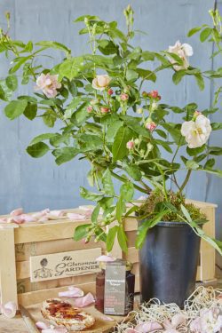 Alongside the healthy, ready-to-plant rose, carefully packed in a wooden crate, we include a jar of the most tasty rose petal jam.