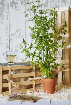 Alongside a beautiful and hardy jasmine plant in a terracotta pot they will find a bag of the finest quality jasmine tea pearls. Dropped into a glass of boiled water, these pretty pearls will slowly unfurl and transform into a wonderfully soothing jasmine tea.
