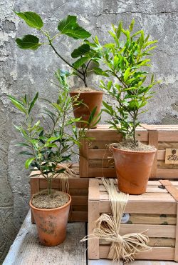 We’ll carefully pack an evergreen olive tree, an elegant fig tree and an exotic pomegranate bush into warm terracotta pots, wrap them in wood wool, tuck them inside a handsome wooden crate, and deliver it to your favourite sun-seeker.