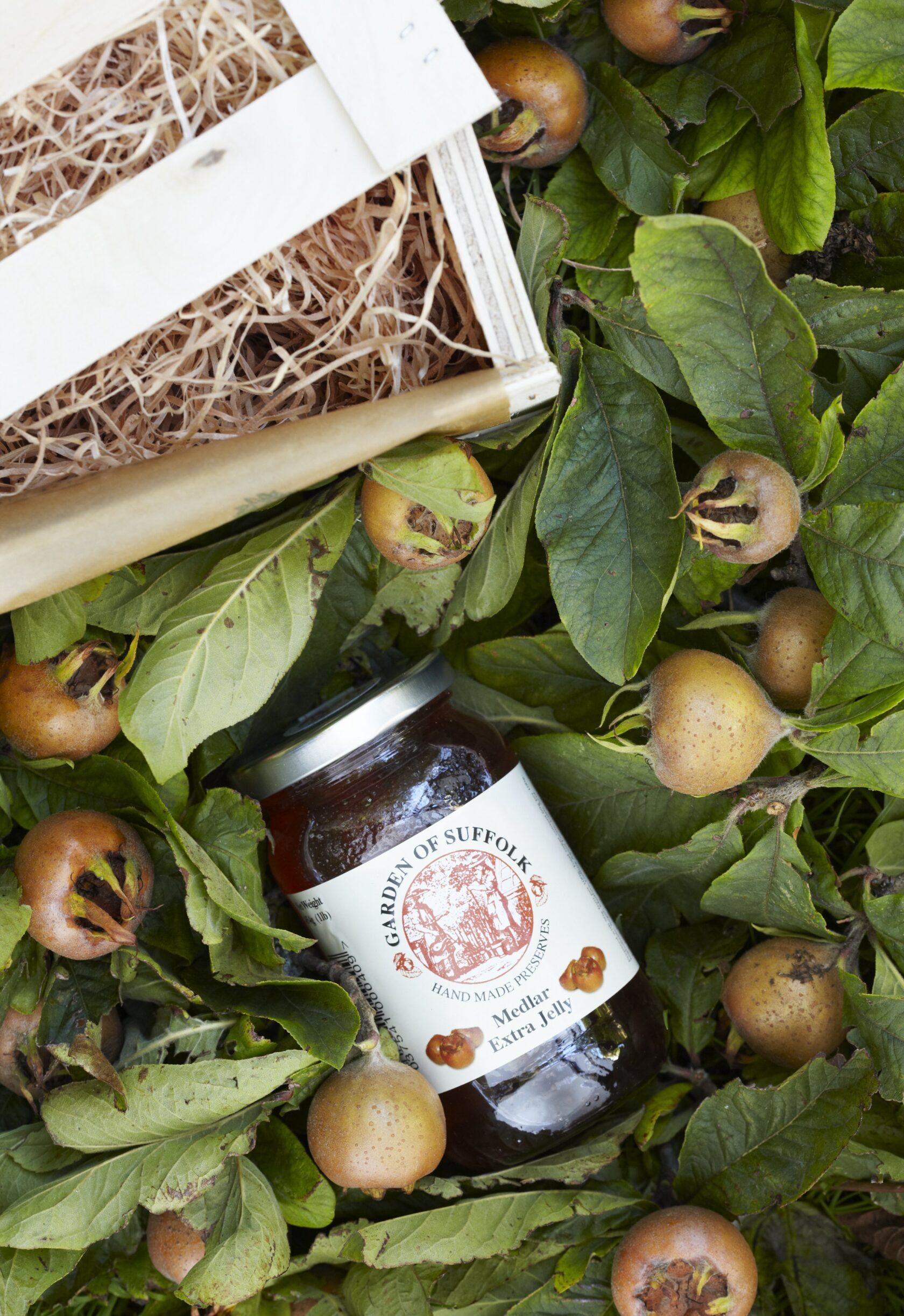 Inside a beautifully crafted wooden crate, you’ll find a young medlar tree ready to plant. We include everything the adventurous gardener needs to start their journey. Alongside the tree, a jar of rose-coloured medlar jelly offers a taste of this eccentric fruit while they wait for the first harvest. This combination turns the act of gardening into a memorable and delicious experience.