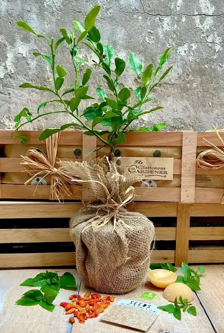 Delight your favourite Thai chef with this handsome and fragrant Thai lime tree. It arrives beautifully packaged in a wooden crate, with a handy supply of delicious palm sugar and a packet of Thai basil seeds to grow for future feasts.