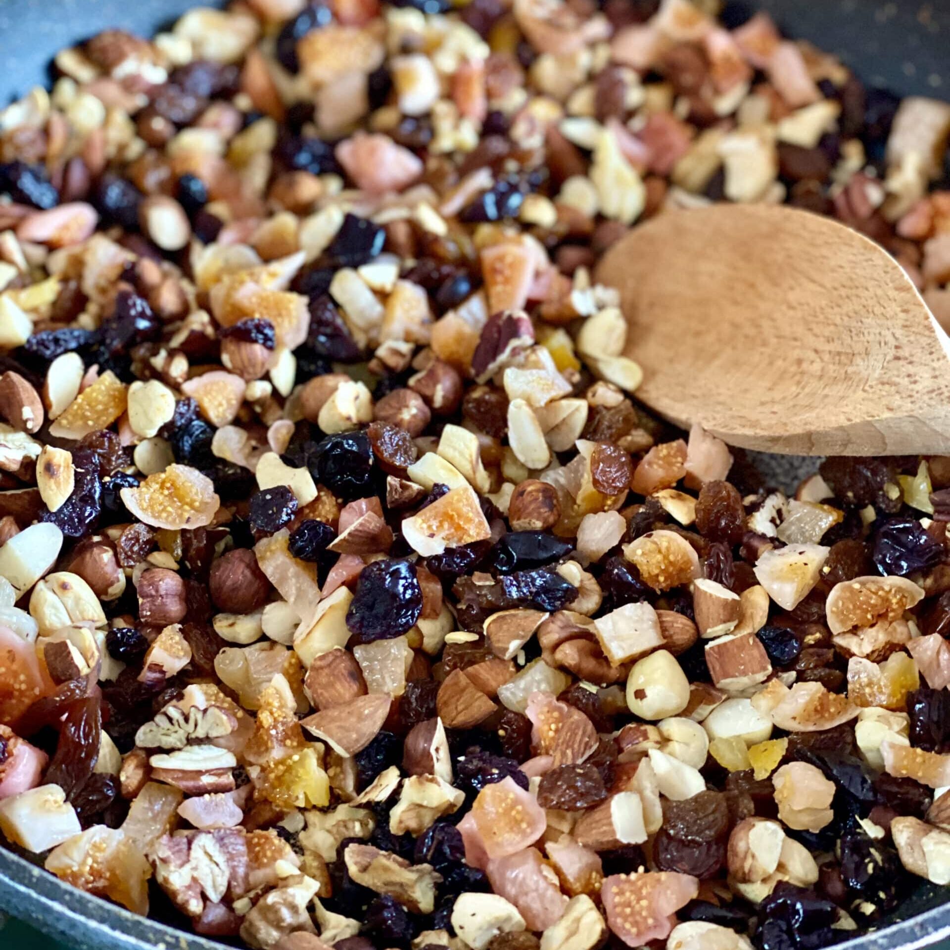 - Mix the nuts and fruit together in a mixing bowl.